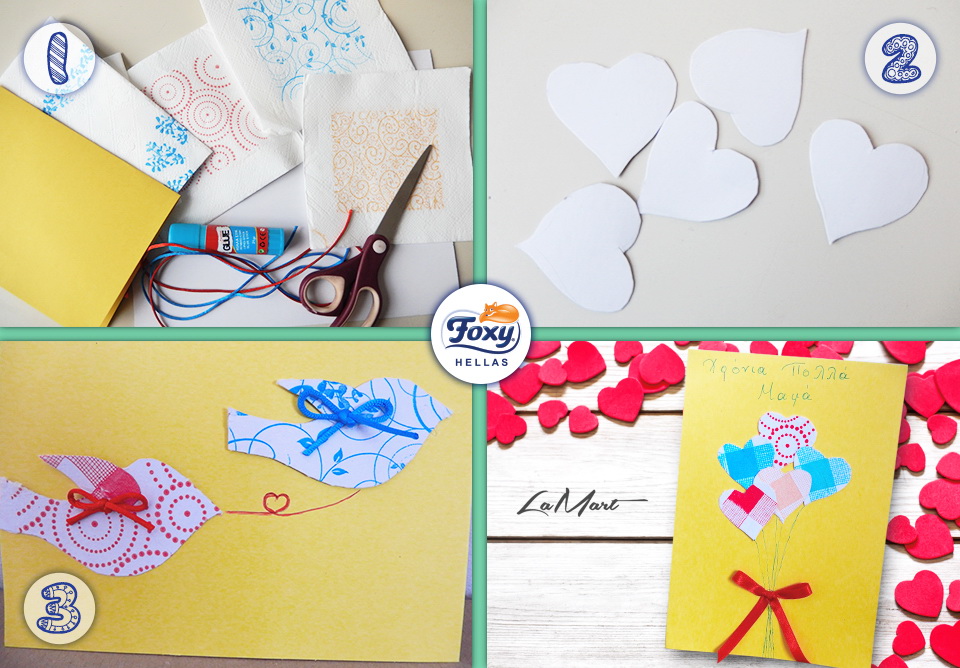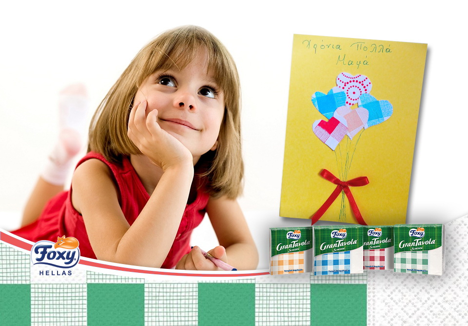 “Μαμά, σε αγαπώ! Για 1000 λόγους, και πολλούς ακόμα που δεν έχω χώρο να γράψω. Σου φτιάχνω μια κάρτα με τις ευχές μου, λοιπόν, χρησιμοποιώντας χαρτοπετσέτες Happy Hour Foxy -για να κάνω για σένα την ημέρα αυτή όσο πιο Happy Day γίνεται!”