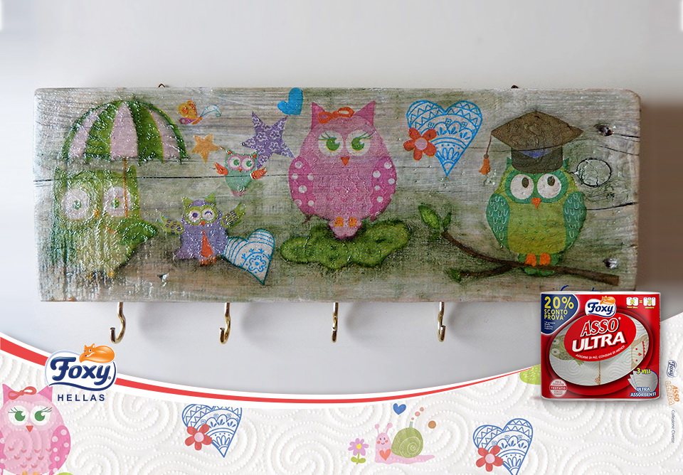 - Ρολό χαρτί Asso Ultra Foxy (ή όποιο άλλο χαρτί κουζίνας Foxy θέλουμε, με τα σχέδια και τα χρώματα που μας αρέσουν)