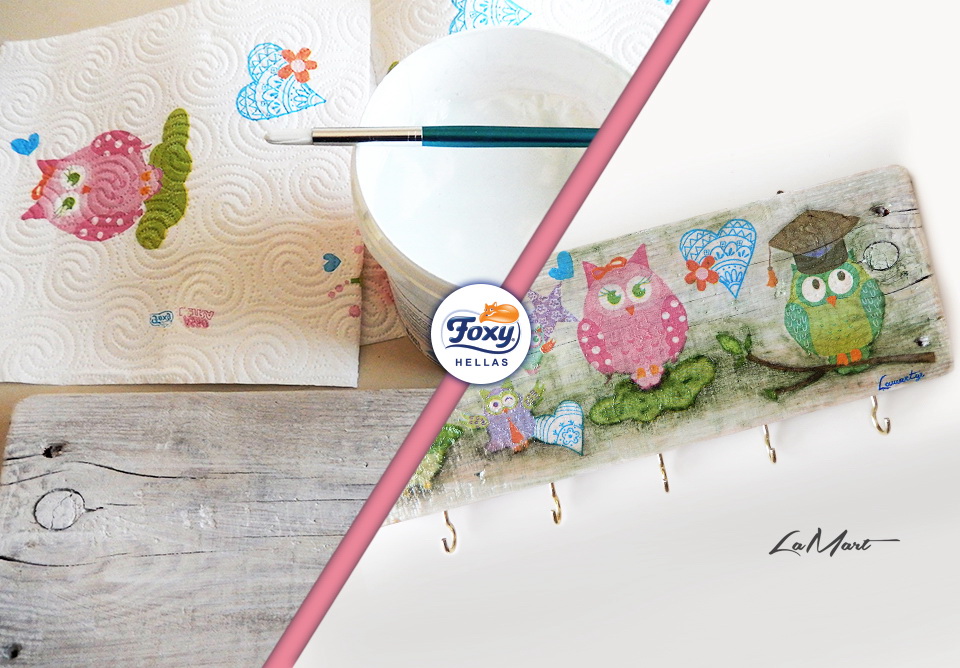 Φτιάχνουμε για το δωμάτιο των παιδιών ξύλινες κρεμάστρες διακοσμημένες με τα σχέδια από το χαρτί κουζίνας Asso Ultra Foxy. Πρωτότυπες και στυλάτες, μπορούμε να κρεμάσουμε σε αυτές τσαντάκια, καπέλα και ό,τι άλλο καλοκαιρινό θέλουμε…