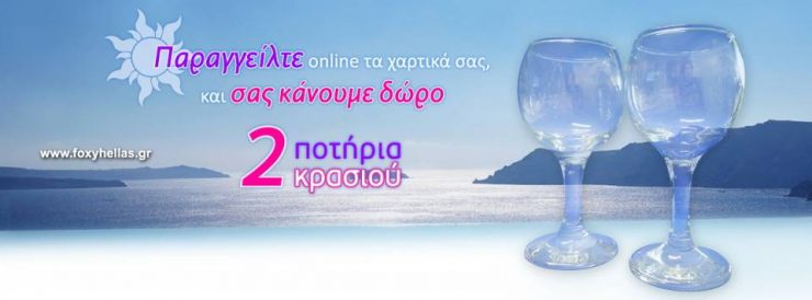 Συνεχίζονται οι προσφορές Foxy και το καλοκαίρι: Με κάθε online παραγγελία των χαρτικών σας σας κάνουμε δώρο δύο κολονάτα ποτήρια κρασιού. Και τα έξοδα αποστολής; Δικά μας!