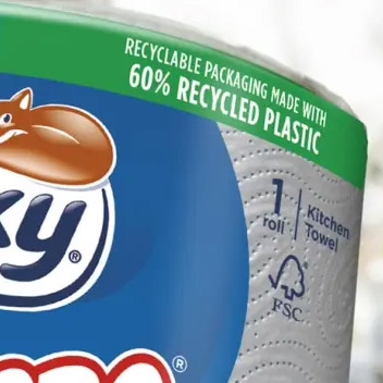 Στην Ετικέτα Διαφάνειας, στην πράσινη μπάρα, αναγράφεται η ακριβής ποσότητα ανακυκλωμένου πλαστικού που χρησιμοποιείται σε κάθε συσκευασία.